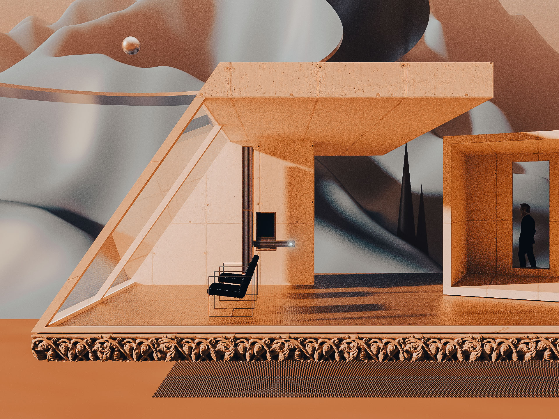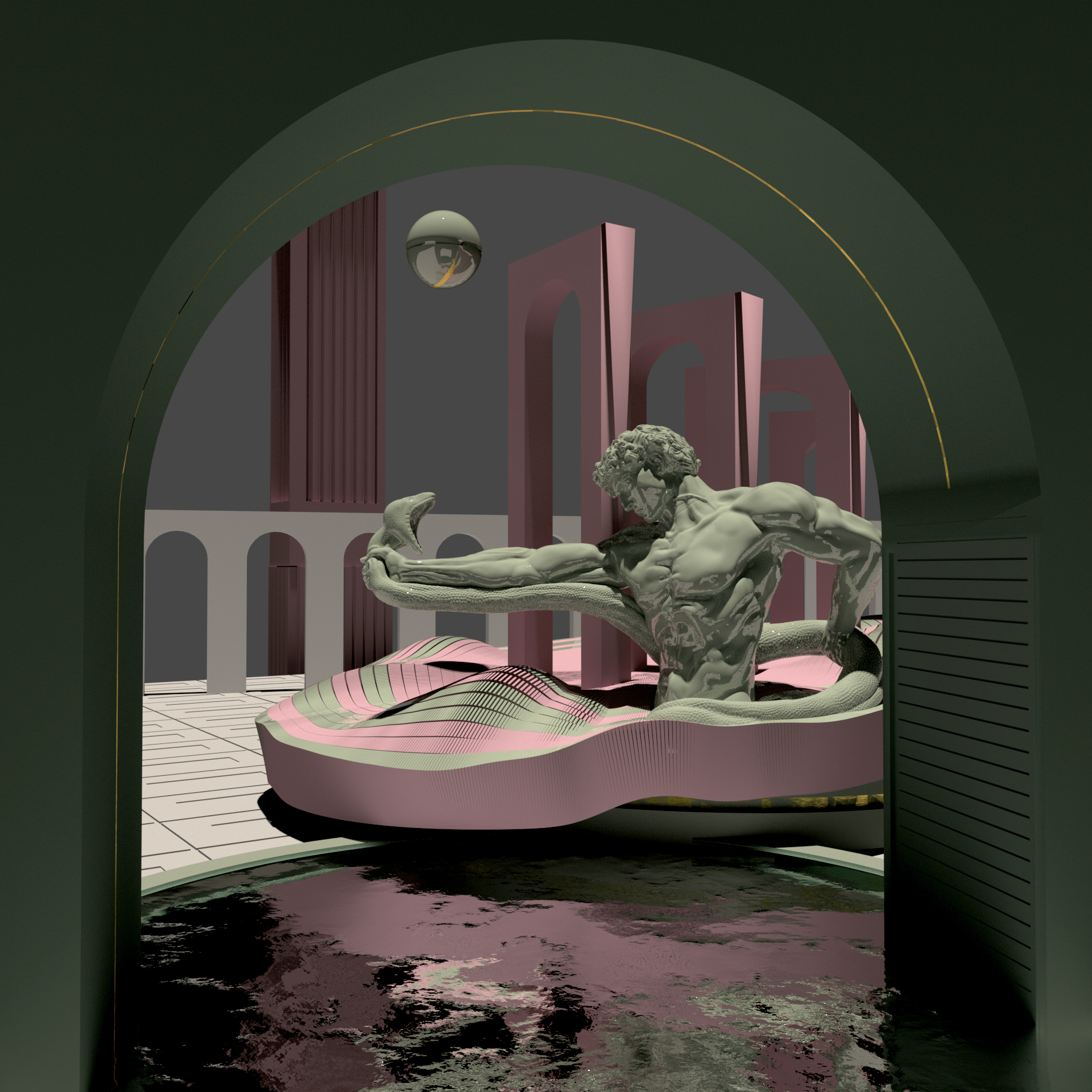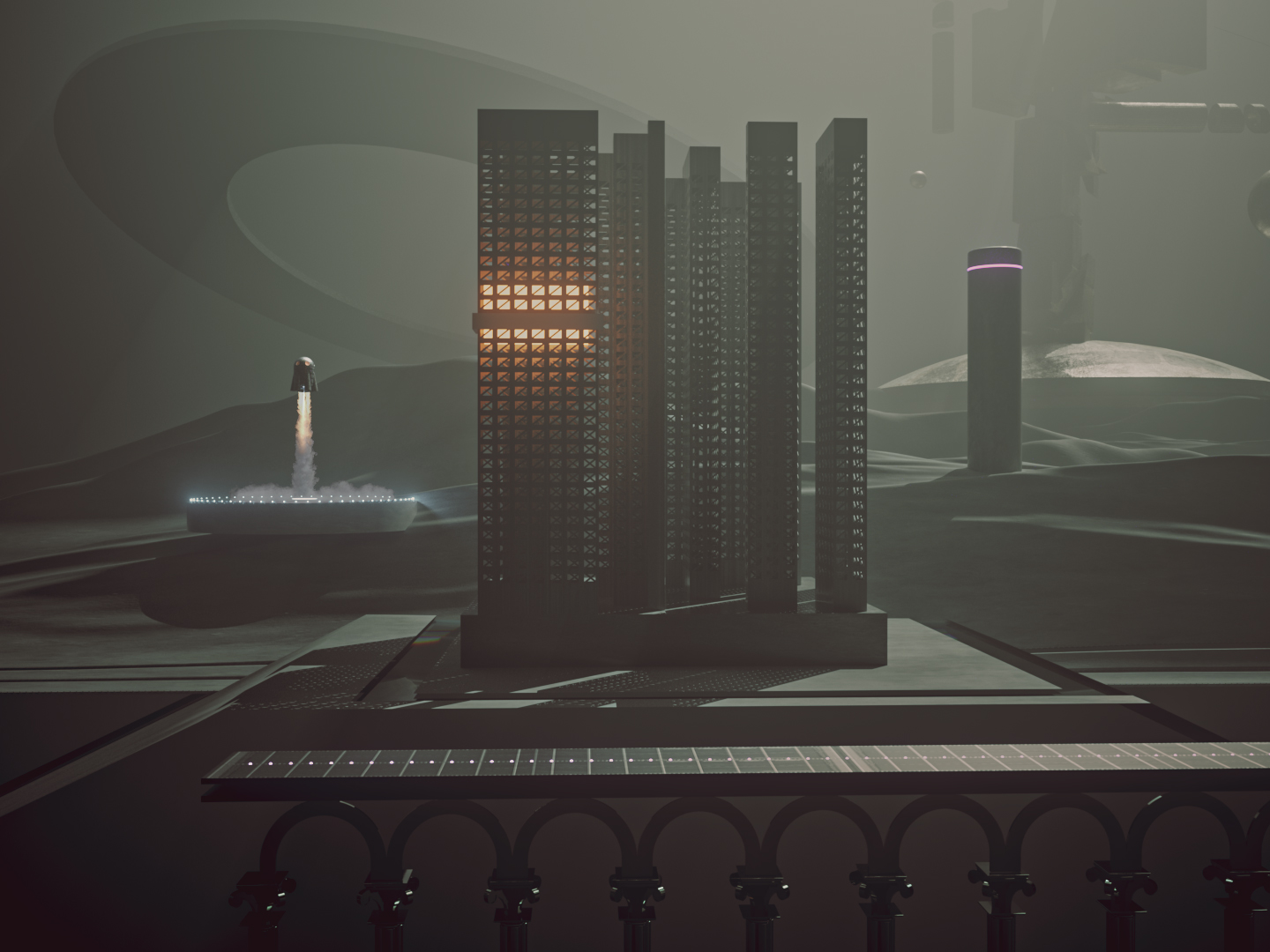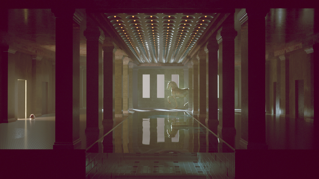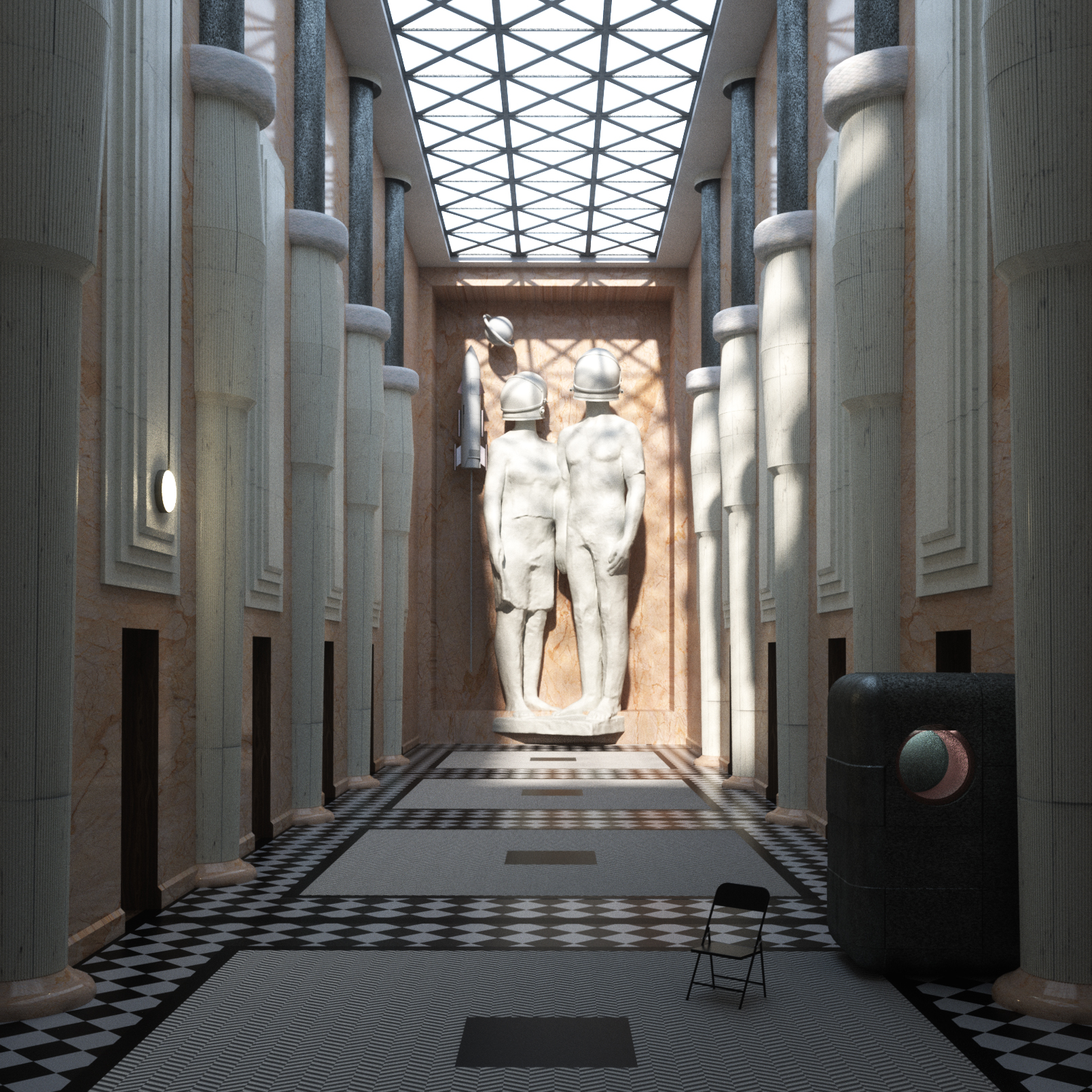 My process starts with a sketch. I model rough versions in Rhino, which I find exremely intuitive and precise. Organic figures are done in Zbrush. The mid or final model is then moved through MOI for better topography and finally rendered in Cinema 4D, using mostly Octane & Redshift as render engines. I pick the engine depending on the lighting and visual scenario. Post is done in PS. But I do use a variety of techniques. From drawing over and filtering with an ipad brush to literally printing and manually finishing the plate. If necessary, the set is drafted in Vectorworks into mechanical drawing sets (compatible with any engineering CAD system) for future construction.