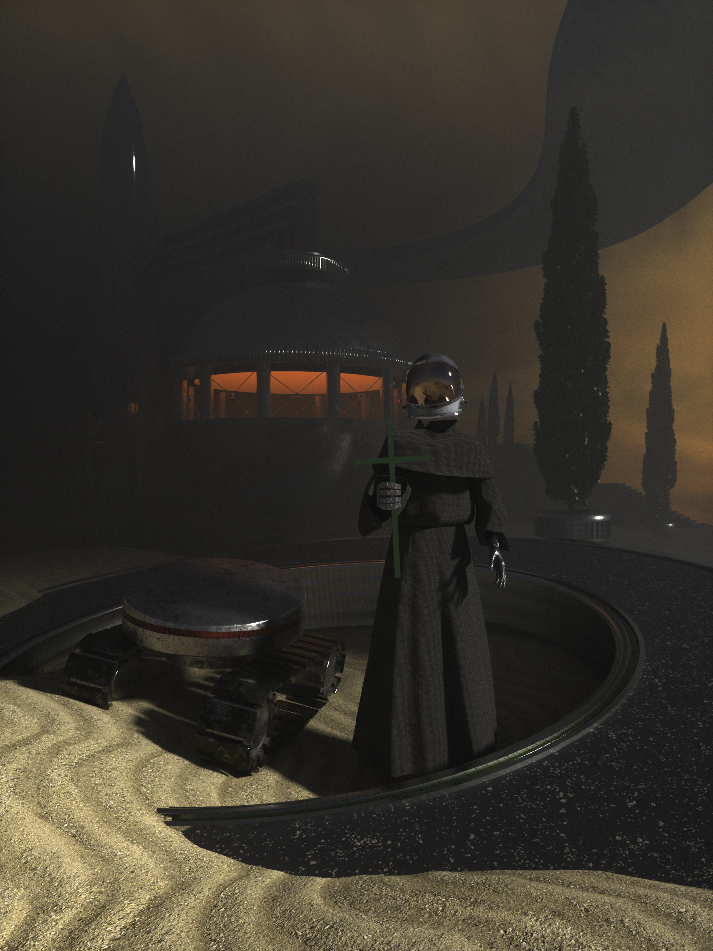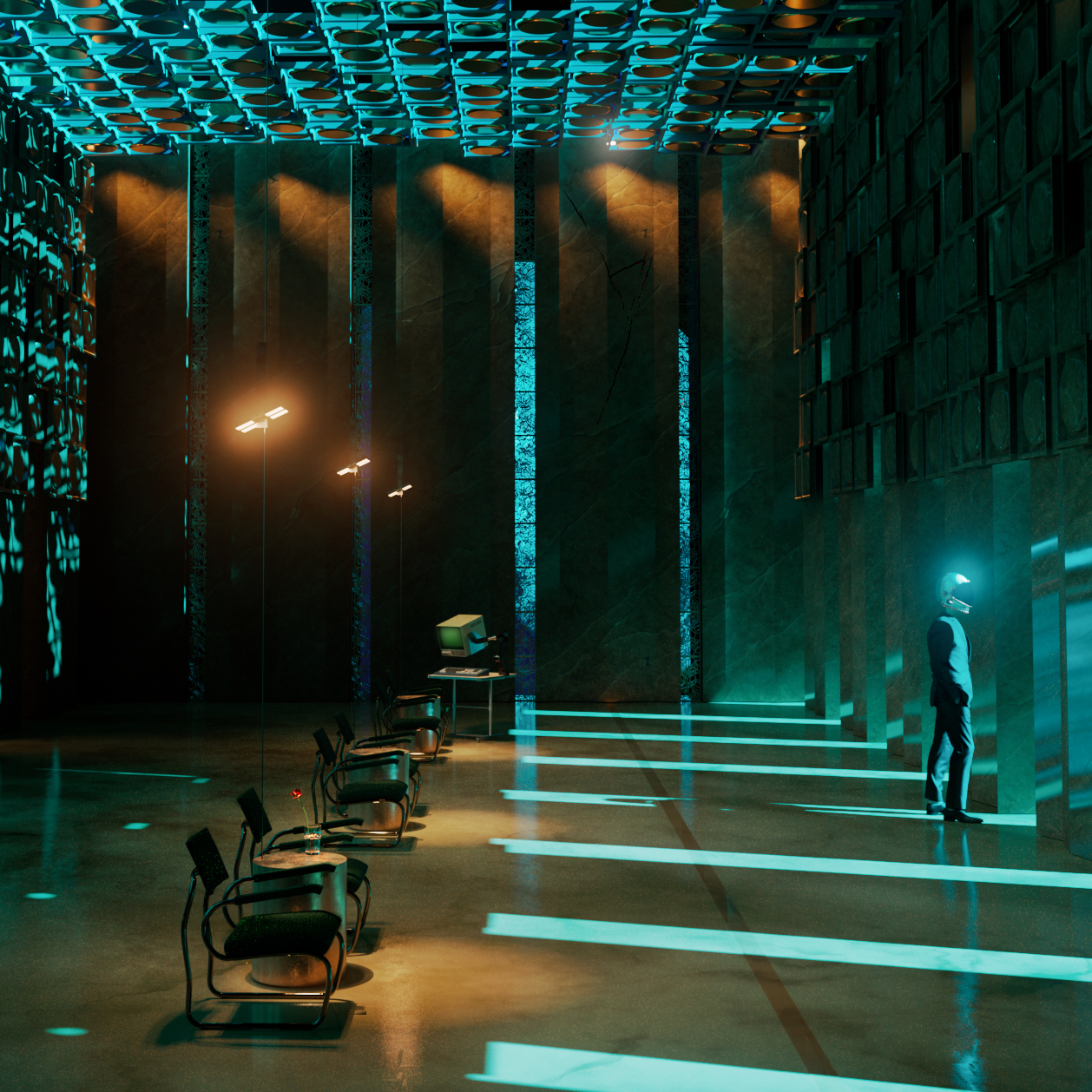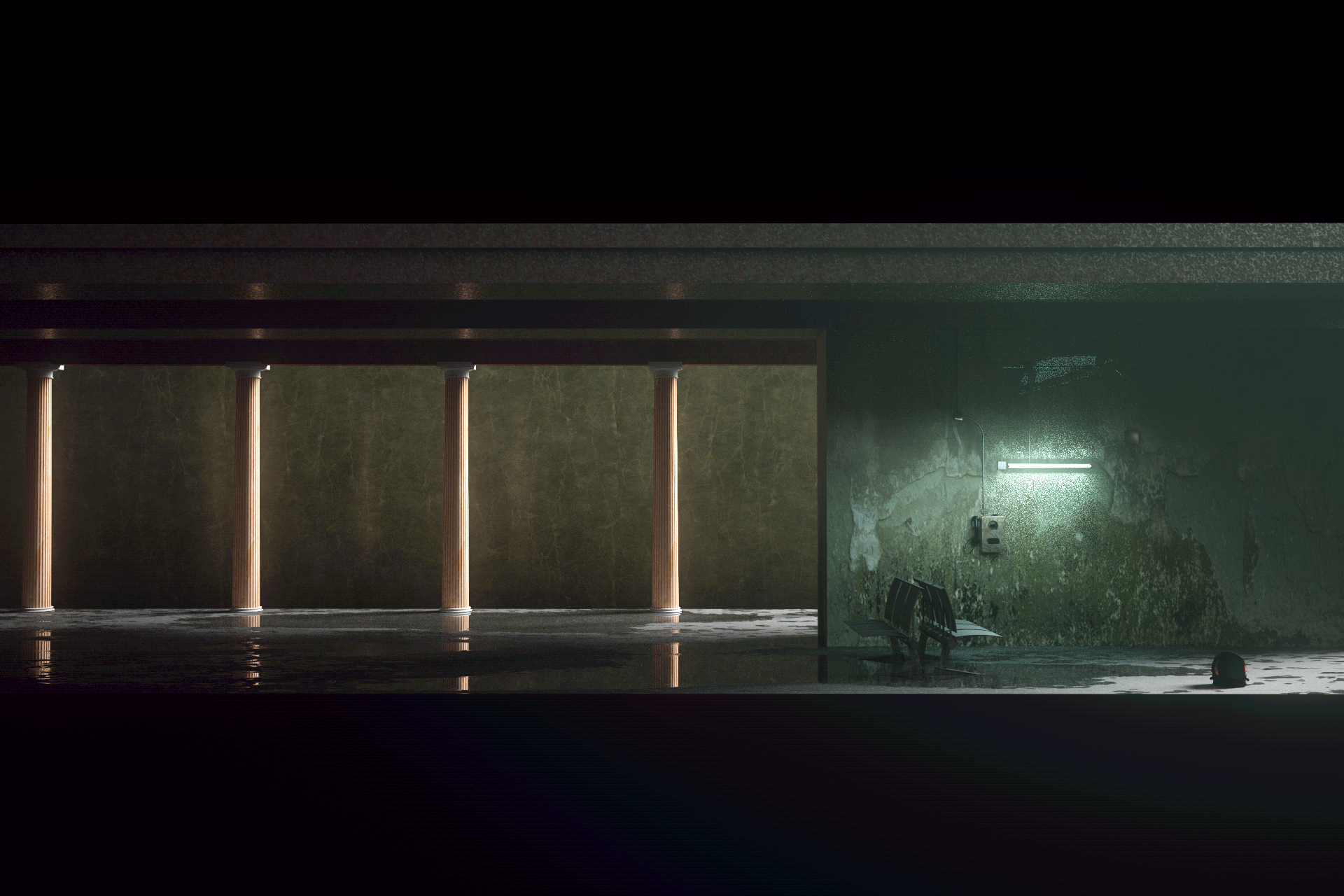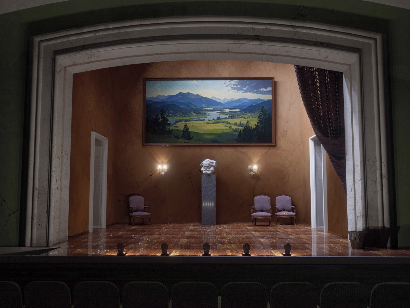 My process starts with a sketch. I model rough versions in Rhino, which I find exremely intuitive and precise. Organic figures are done in Zbrush. The mid or final model is then moved through MOI for better topography and finally rendered in Cinema 4D, using mostly Octane & Redshift as render engines. I pick the engine depending on the lighting and visual scenario. Post is done in PS. But I do use a variety of techniques. From drawing over and filtering with an ipad brush to literally printing and manually finishing the plate. If necessary, the set is drafted in Vectorworks into mechanical drawing sets (compatible with any engineering CAD system) for future construction.